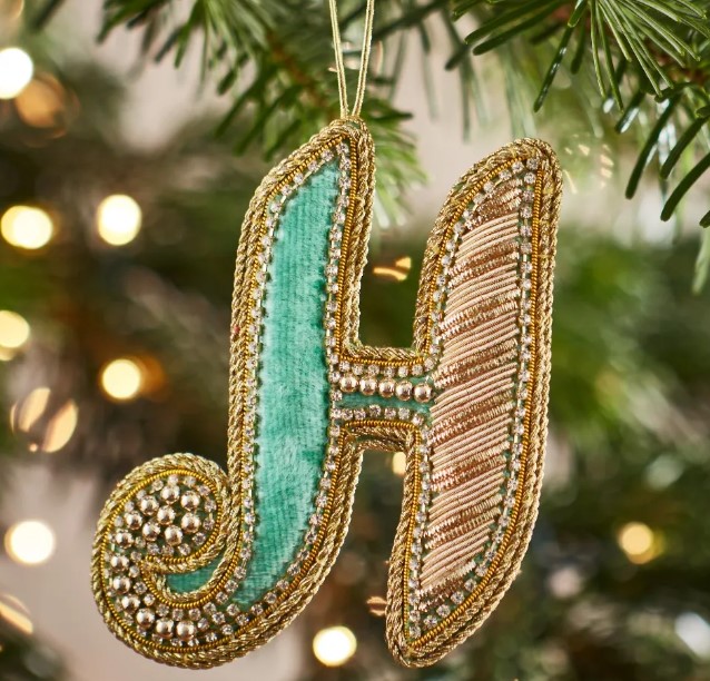 Christmas Decoration – Zari Style Embellished cool green personal alphabet letter H