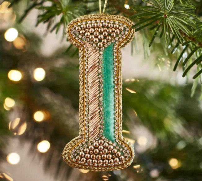 Christmas Decoration – Zari Style Embellished cool green personal alphabet letter I