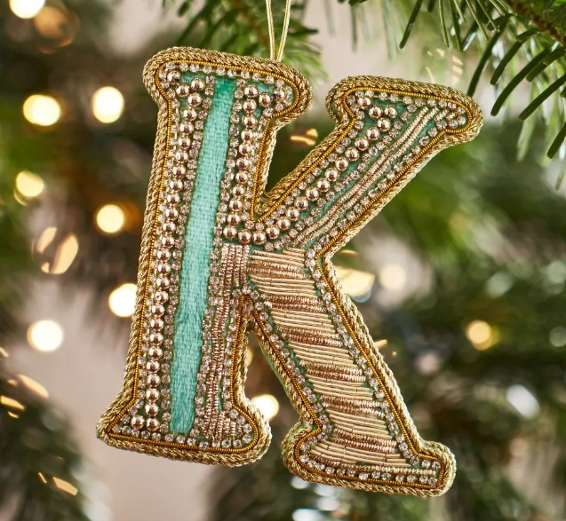 Christmas Decoration – Zari Style Embellished cool green personal alphabet letter K
