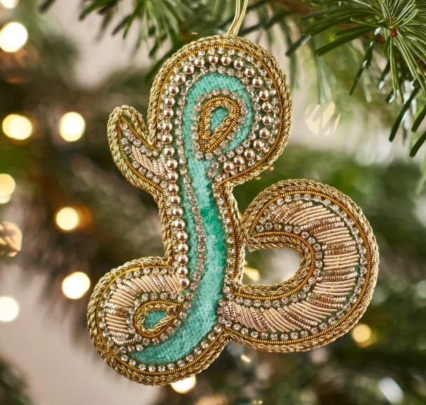 Christmas Decoration – Zari Style Embellished cool green personal alphabet letter L