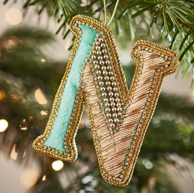 Christmas Decoration – Zari Style Embellished cool green personal alphabet letter N