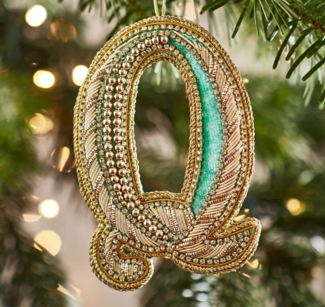 Christmas Decoration – Zari Style Embellished cool green personal alphabet letter Q