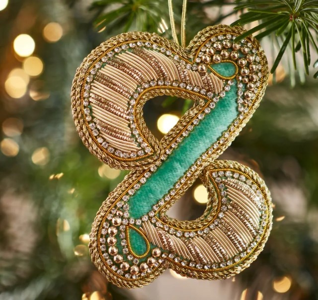 Christmas Decoration – Zari Style Embellished cool green personal alphabet letter Z