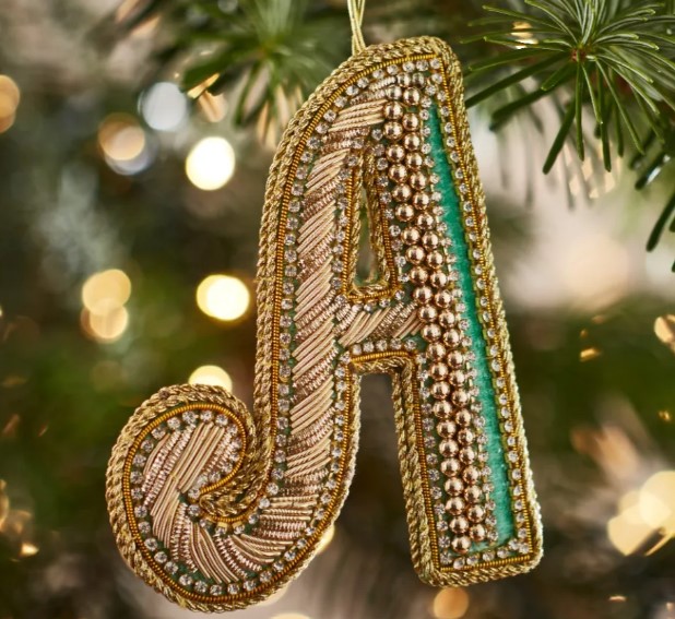 Christmas Decoration – Zari Style Embellished cool green personal alphabet letter A