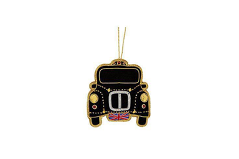 Zari London Taxi: Beautiful colourful hand embroidered festive London taxi, beaded and made with zari gold thread on padded velvet covering.