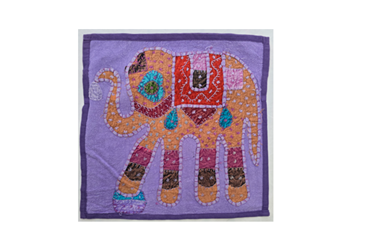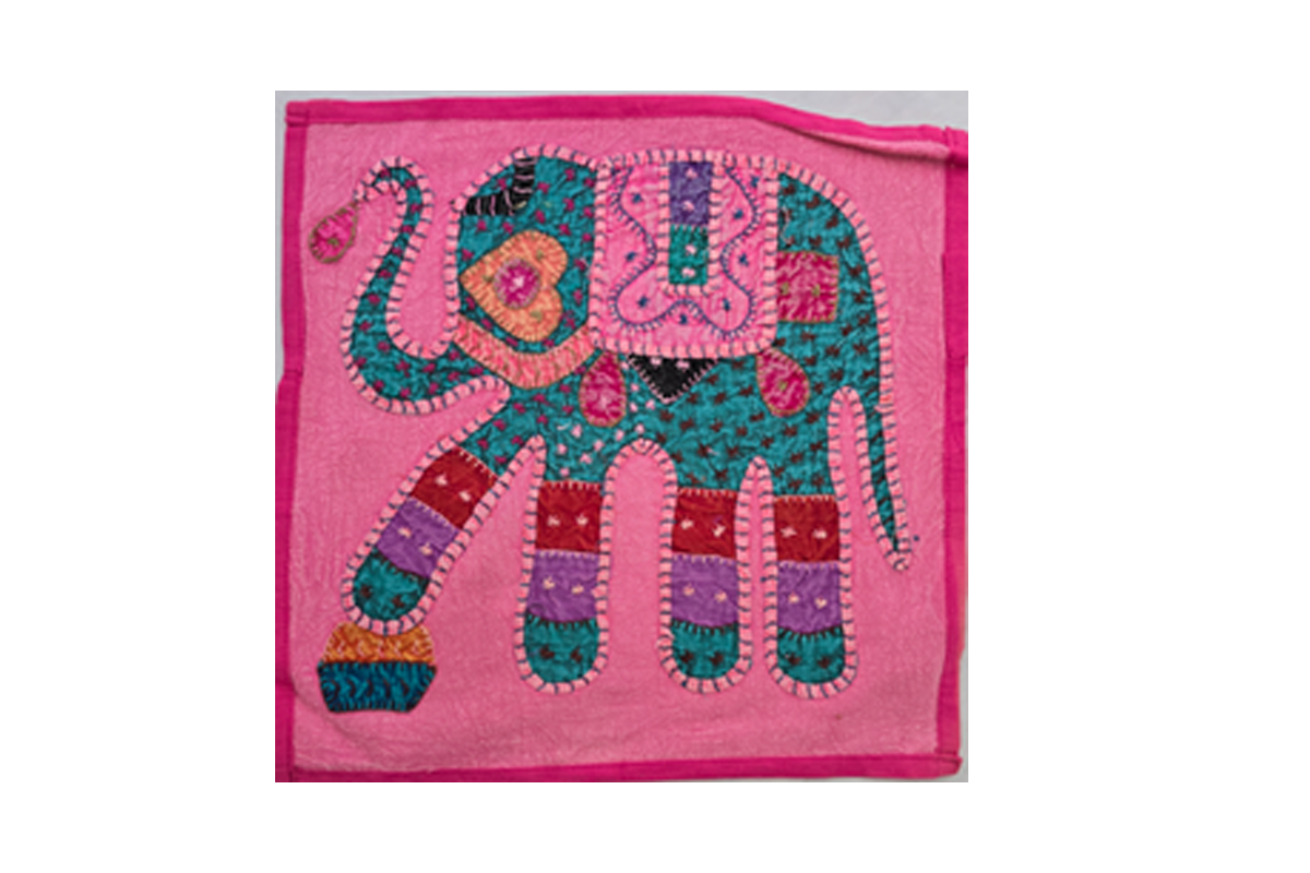 Cotton patchwork cushion cover with elephant print: Pink