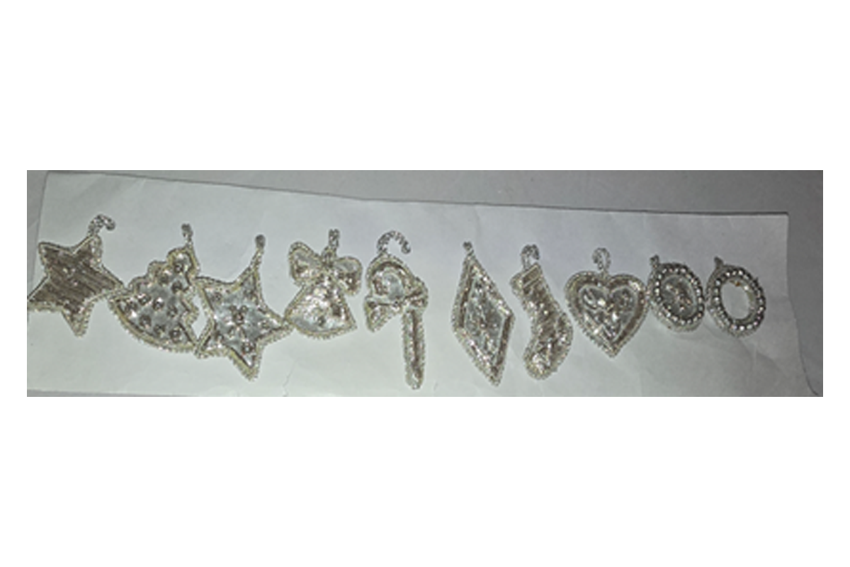 Be the first to review “Hand Embroidered Beaded – Strip of 10 XMAS Tree Hangings SILVER”