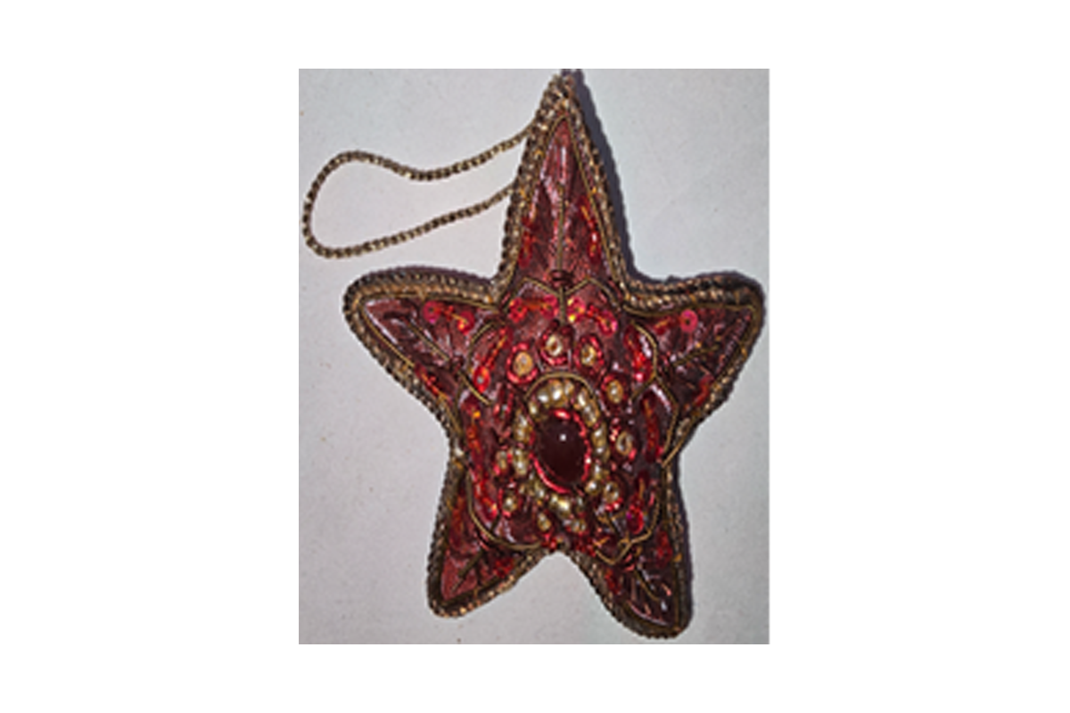 Hand embellished, embroidered, beaded, padded with satin covering star hanging