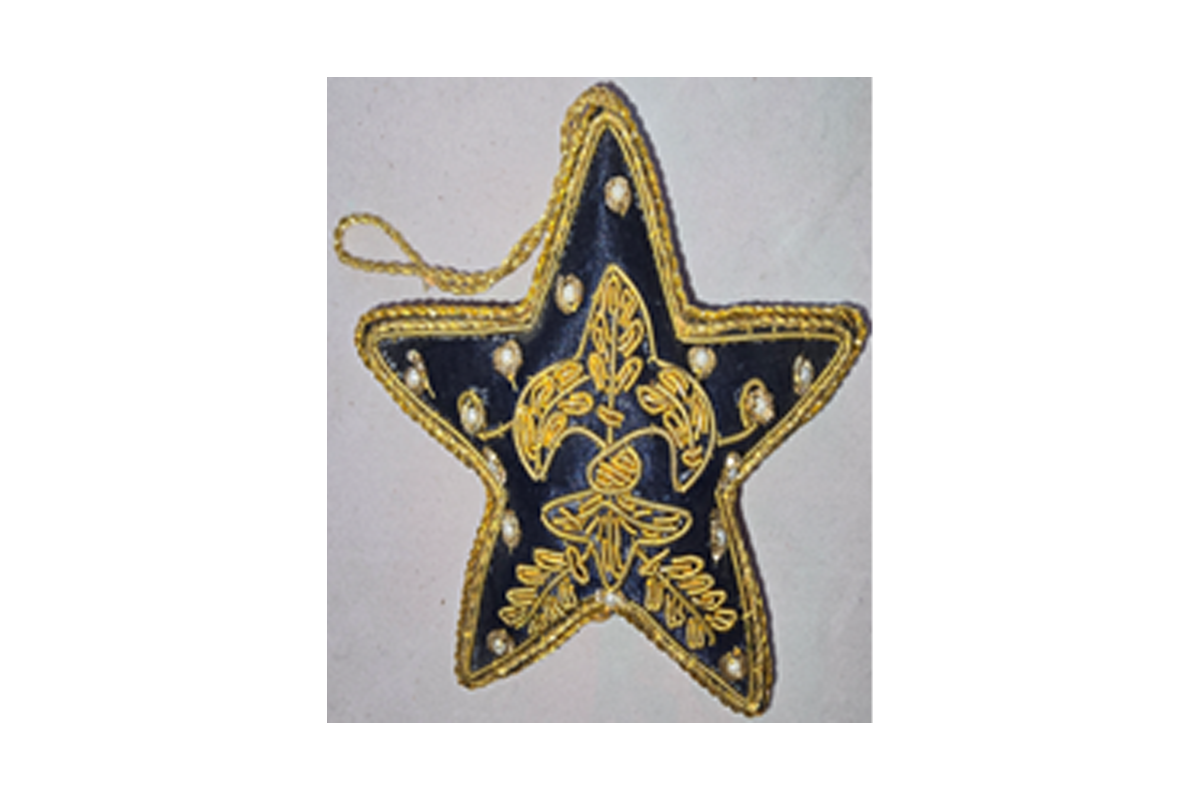 Hand embellished, embroidered, beaded, padded with satin covering star hanging