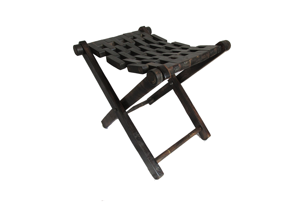 Solid wood folding stool handcrafted with wooden links.