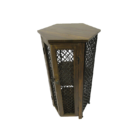 Solid wood octagon wine bottle rack with shelf and jali doors.